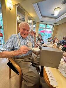 Jetzt am 9.9. feierte Erich Küster in geselliger Runde mit Nachbarn und Bingo-Freunden seinen 101. Geburtstag und wieder kam die Bezirksbürgermeisterin zum Gratulieren. Sie überreichte Blumen und eine weitere Schale der Königlichen Porzellan-Manufaktur. Die ziert nun seinen Schrank „und wird schön genutzt für Gebäck“, sagt Erich Küster.