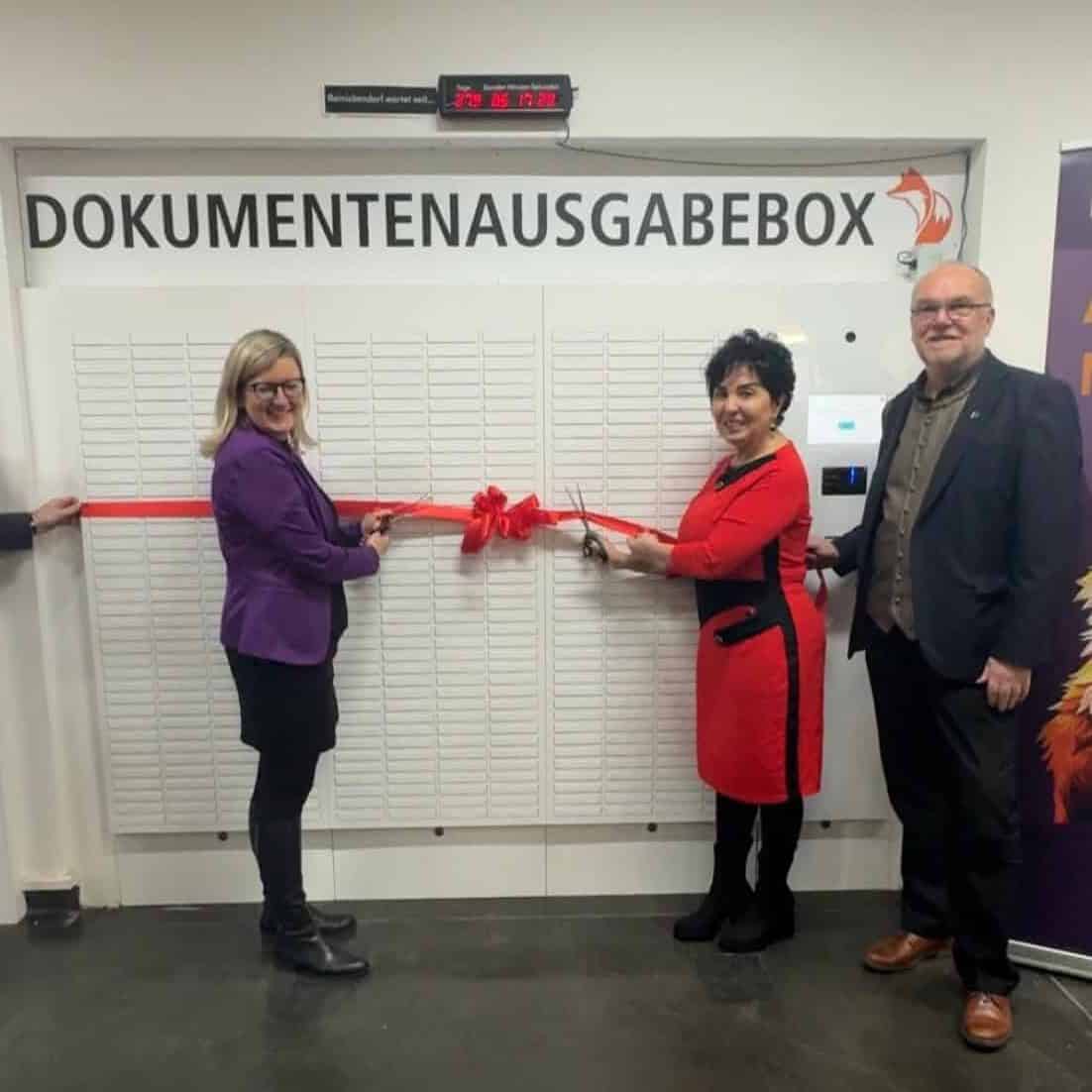 Auf diesen Tag hat Reinickendorf 379 Tage gewartet: Im Foyer des Rathauses Reinickendorf wurde am 20. November 2025 die erste Dokumentenausgabebox in den Berliner Bezirken in Betrieb genommen. Die Box ist ein gemeinsames Projekt der Senatskanzlei und des Bezirksamts Reinickendorf. Ab sofort können im Rathaus Reinickendorf beantragte Personalausweise und Reisepässe auch außerhalb der Öffnungszeiten des Bürgeramtes abgeholt werden. Dieses Angebot soll nach einer Probephase auch für in den anderen Reinickendorfer Bürgerämtern beantragte Dokumente möglich sein.