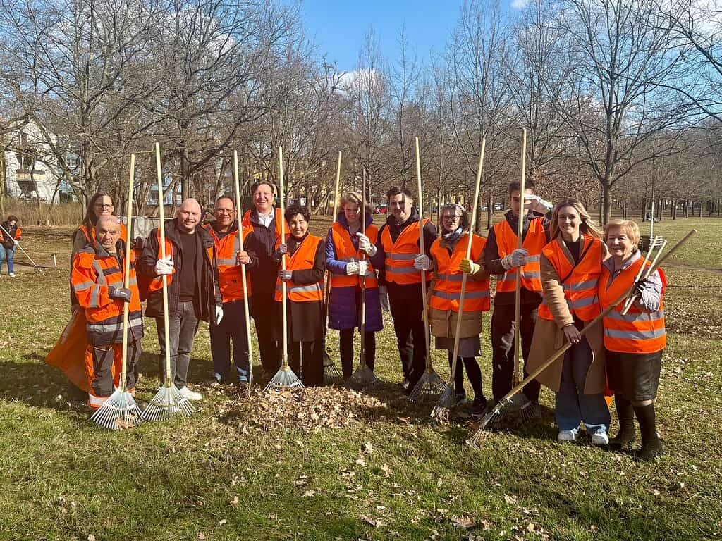 Frühjahrsputz: Stadträte und Bezirksverordnete harken Laub im Witte-Park