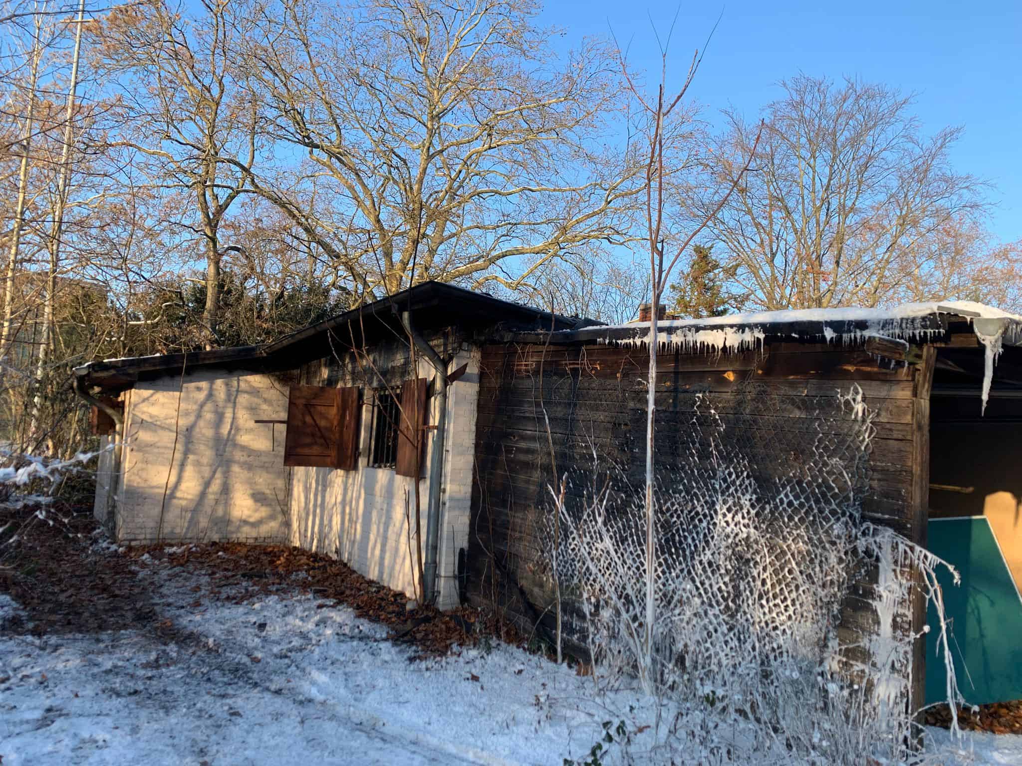 Auf der Sportanlage „Borsigpark“ in der Berliner Straße in Tegel ist am Dienstagmittag, 6.1., ein leer stehendes einstöckiges Gebäude durch einen Brand zerstört worden.