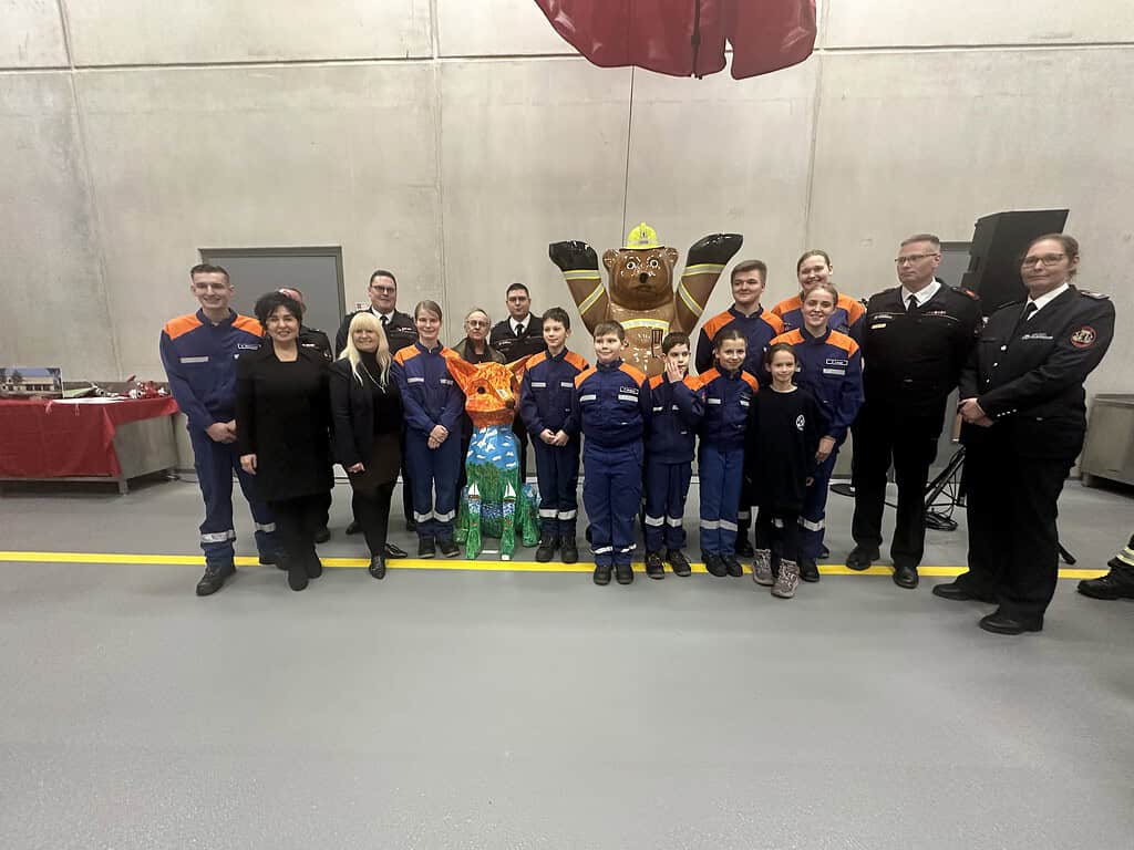 Die Bezirksbürgermeisterin übergab eine neu gestaltete Fuchsskulptur aus der Reinickendorfer Kampagne „Get Foxinated“an die Freiwillige Feuerwehr Tegelort. Die ursprünglich in Konradshöhe aufgestellte Skulptur war Opfer von Vandalismus geworden und wurde vom Künstler Martin Gietz neu bemalt.